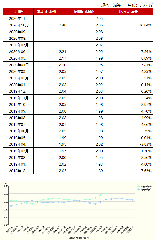 2018年12月到2020年11月玉米價格數(shù)據(jù)統(tǒng)計……